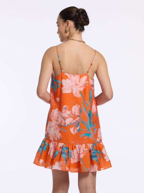 This flirty dress in a bold floral print is the seasonal go-to you’ve been waiting for. The drop waist and tiered skirt create a flattering feminine silhouette and effortless movement. Adjustable spaghetti straps allow you to tailor the fit to perfection, making it the ideal choice for warm weather days.