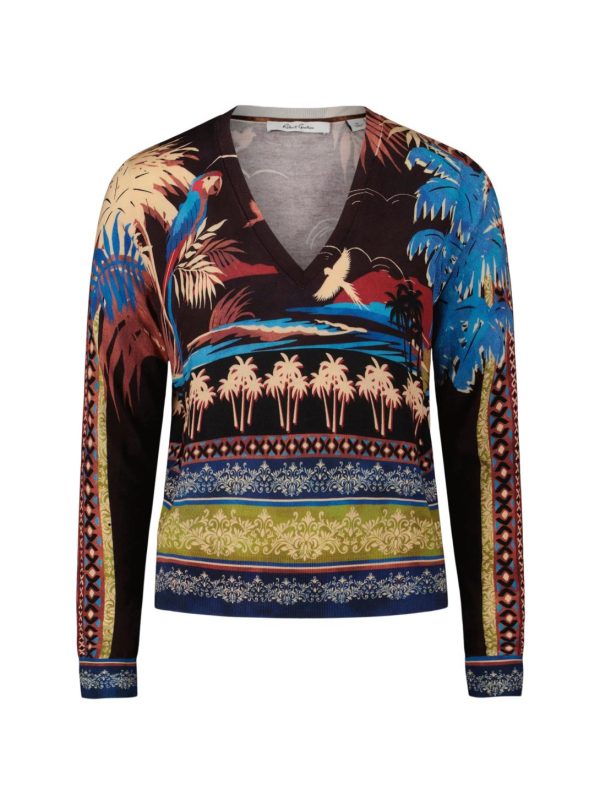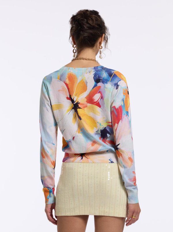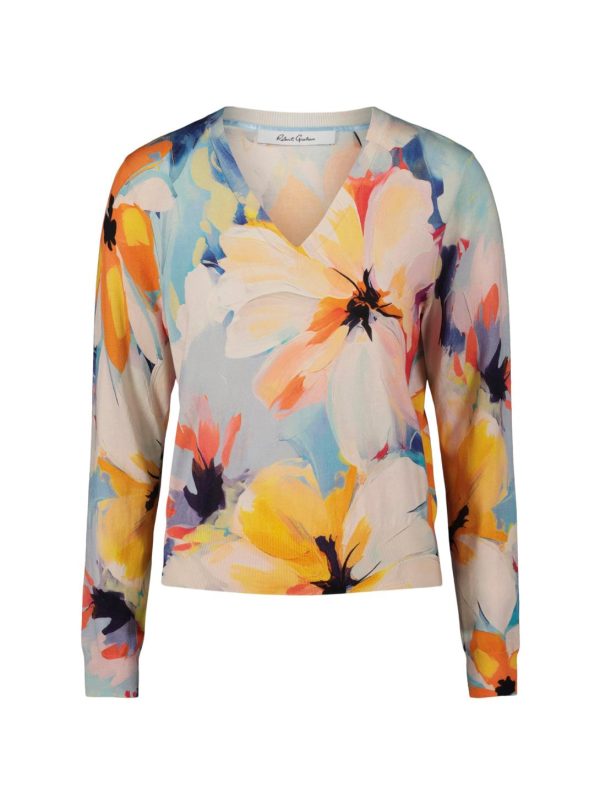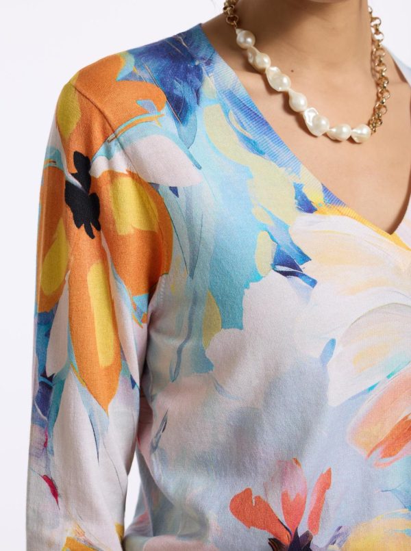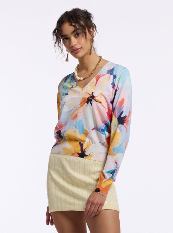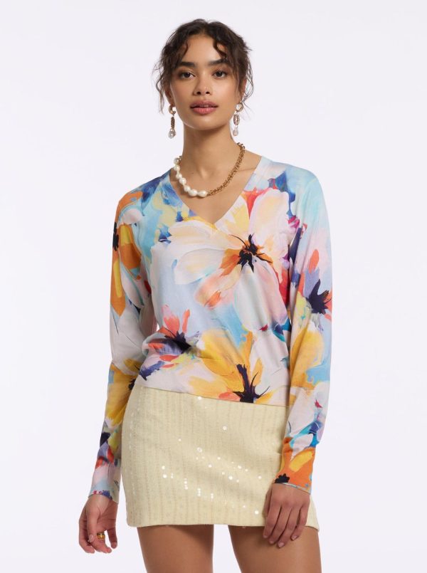 The Evelyn sweater will quickly become one of your favorites. Notice the large watercolor floral print that takes bloom across this style. With a deep v-neck, this lightweight top is sophisticated yet completely versatile.