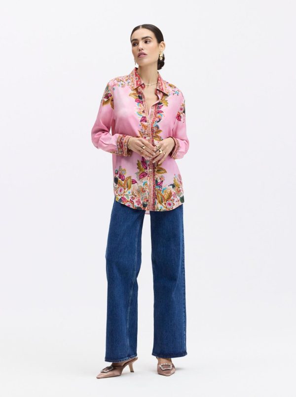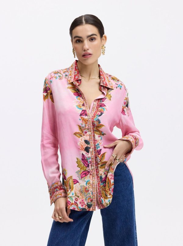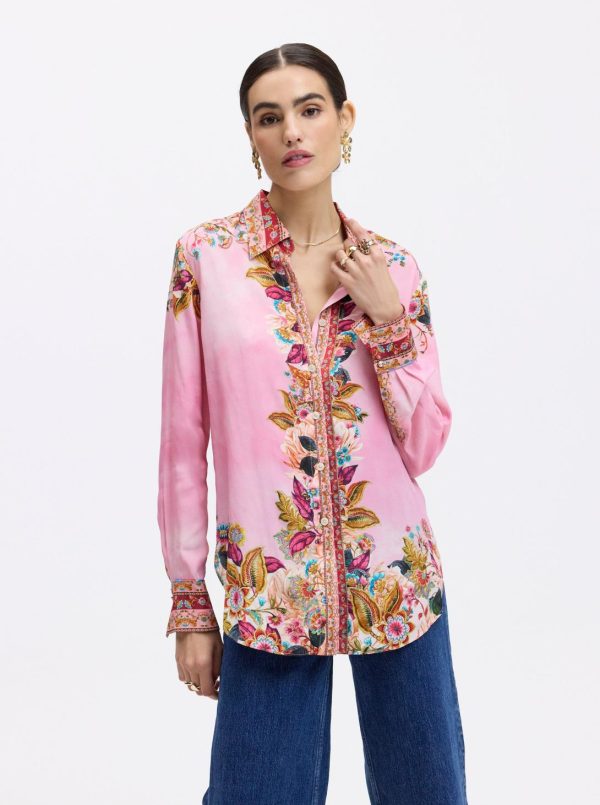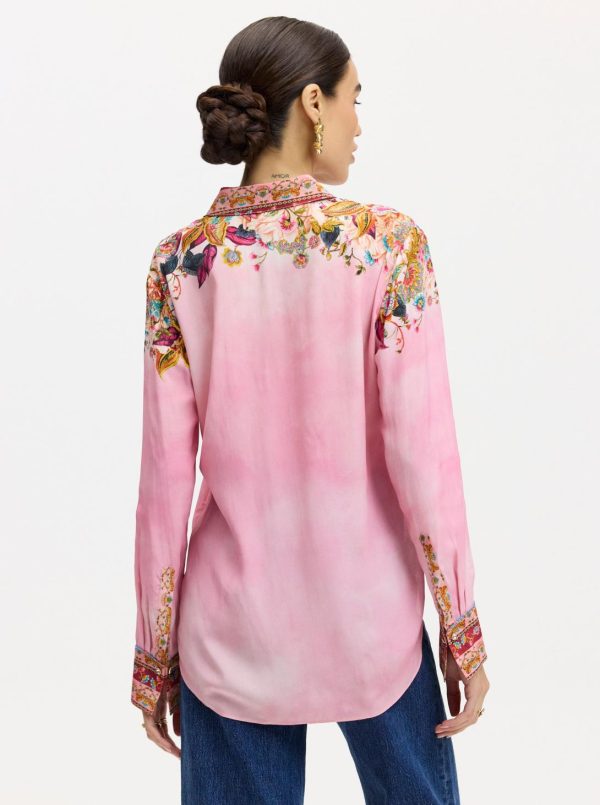 An engineered sophisticated floral print gives this standout style bold confidence. You’ll love how the romantic color scheme adds a feminine touch. The contrast trims at the collar, placket, and cuffs come together in perfect harmony. A gently tapered waist gives this shirt a flattering, relaxed fit.