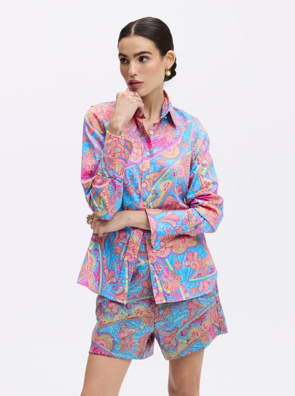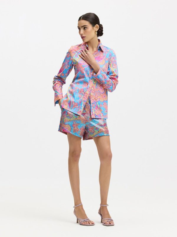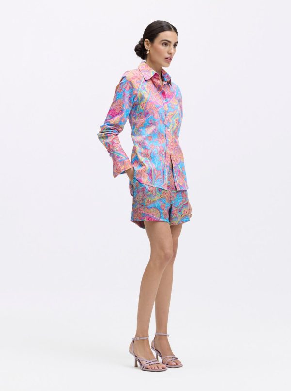You’re going to love this modern take on classic paisleys. This stretch cotton shirt features an unexpected composition in a bold neon print. Novelty buttons at the collar and cuffs add an elegant touch.